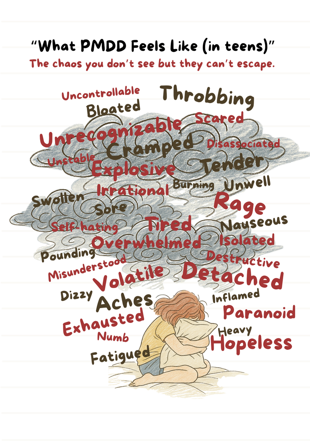 ✔️ Real talk about what PMDD actually feels like in teens (rage, hopelessness, dissociation)
