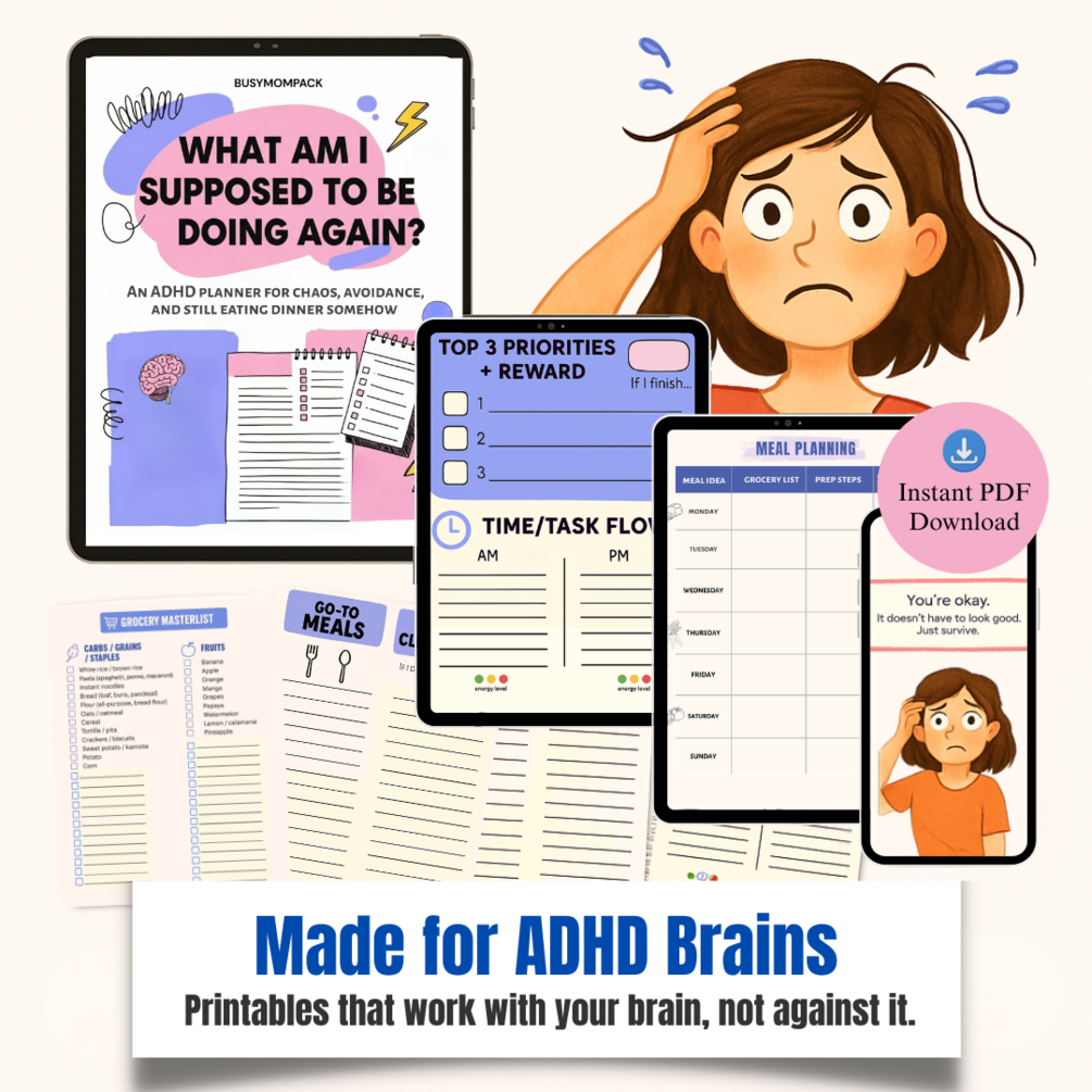 đź§ An ADHD-friendly printable planner PDF for chaos, avoidance, and still eating dinner somehow